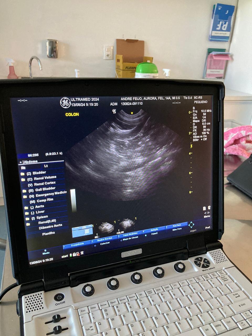 Através de um transdutor que emite ondas sonoras de alta frequência, o veterinário consegue visualizar em tempo real as estruturas internas do animal, como fígado, rins, baço, intestinos e órgãos reprodutivos.